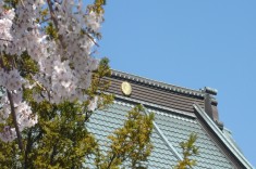 本堂屋根箱棟には、嘉永七年八月(1854) 京都御所参内のおり、孝明天皇より賜った菊花御紋を掲げております。