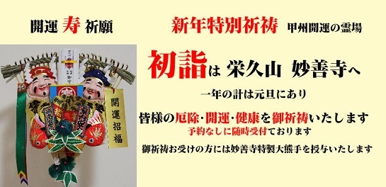 初詣は山梨県栄久山妙善寺へご参拝下さい。